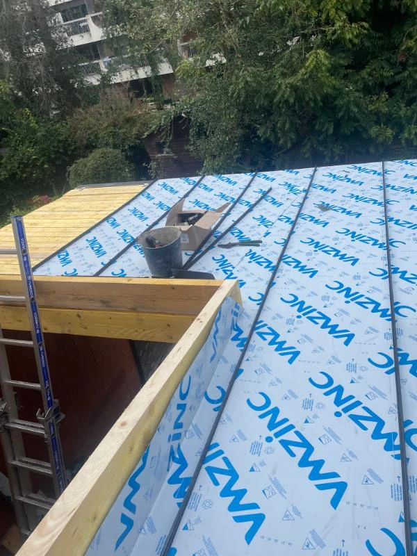 Création de charpente pour création de toiture zinc anthracite à joints debout | Ajouts de deux verrières VELUX